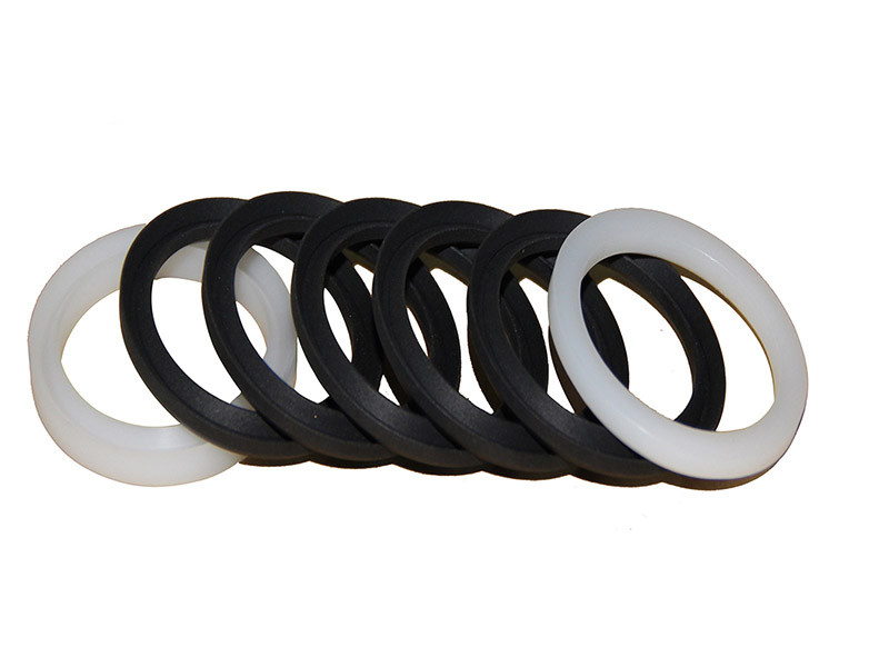 一般V型的防塵圈的使用數(shù)量取決于密封壓力的大小,一般壓力高使用數(shù)量多,軸向尺寸大,摩擦阻力增大,唇口磨損也大,所以不能僅靠增加V型的防塵圈數(shù)量來提高密封性能。在使用中要經(jīng)常調(diào)整壓力環(huán)的壓緊力,使密封圈的唇部與缸或活塞桿的表面保持密切接觸,保證密封。V型的防塵圈在使用中的數(shù)量在3~4個左右。
