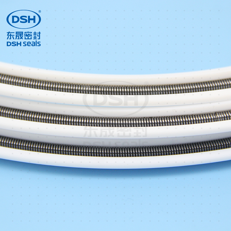 彈簧四氟密封環(huán) - 由四氟(聚四氟乙烯,PTFE) 橡膠制品,用液壓等設(shè)備中,液壓設(shè)備、標(biāo)準(zhǔn)油缸、機(jī)床、油壓機(jī),液壓油、阻燃油、水、氣。