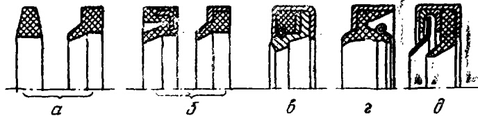 根據(jù)防塵圈的剛度,有卸開式 (圖3,6,B;4、6)和封閉式 (圖4、a )兩種安裝腔體,前者用于安裝由金屬、織物和塑料愷裝的II組和復(fù)合型的III組防塵圈,后者用于純極咬的和由纖維增強(qiáng)的、以及氈、皮革制造的防塵圈I組和II組。